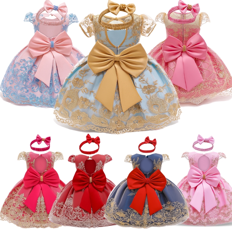 Kids Dresses For Girls 0 2 Years Old Baby Girls Birthday Dresses Cute Princess Party Dress With Freee Headband Shopee Malaysia